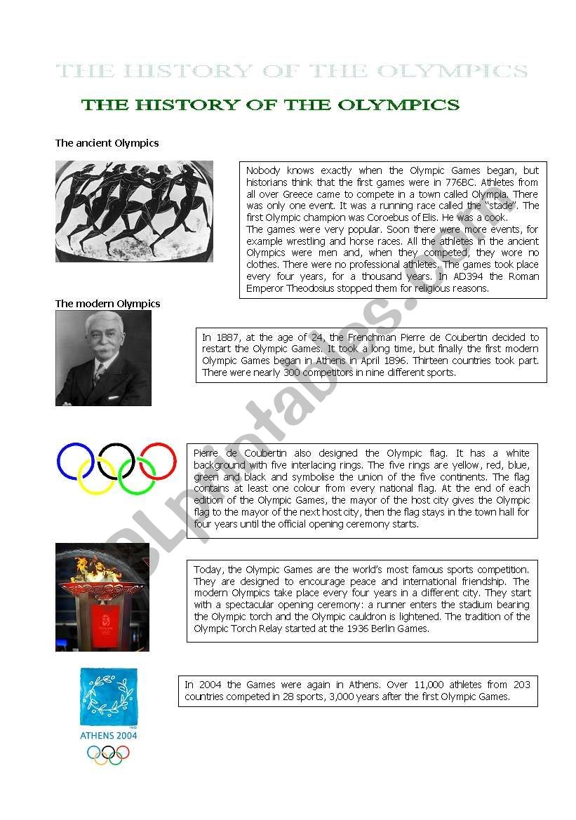 Olympic Games Reading Comprehension ESL Worksheet By Max29