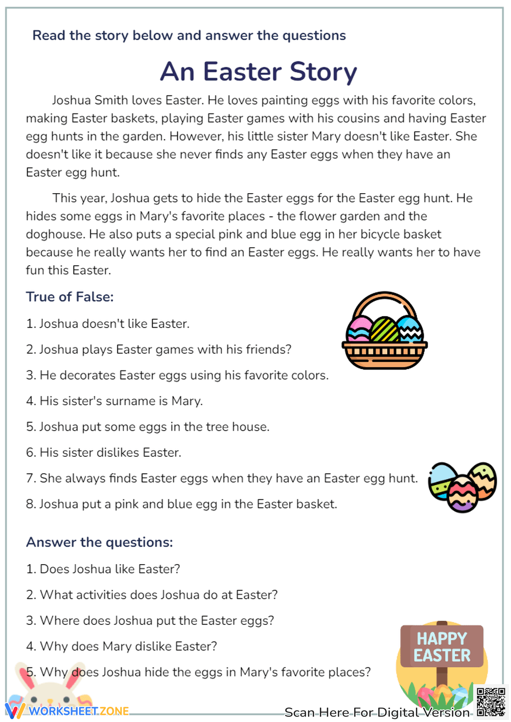 Not only will these worksheets help your child improve their reading comprehension skills, but they will also get them excited about Easter and the joy of learning. Plus, with colorful illustrations and fun Easter-themed activities, your child will be entertained while they learn.