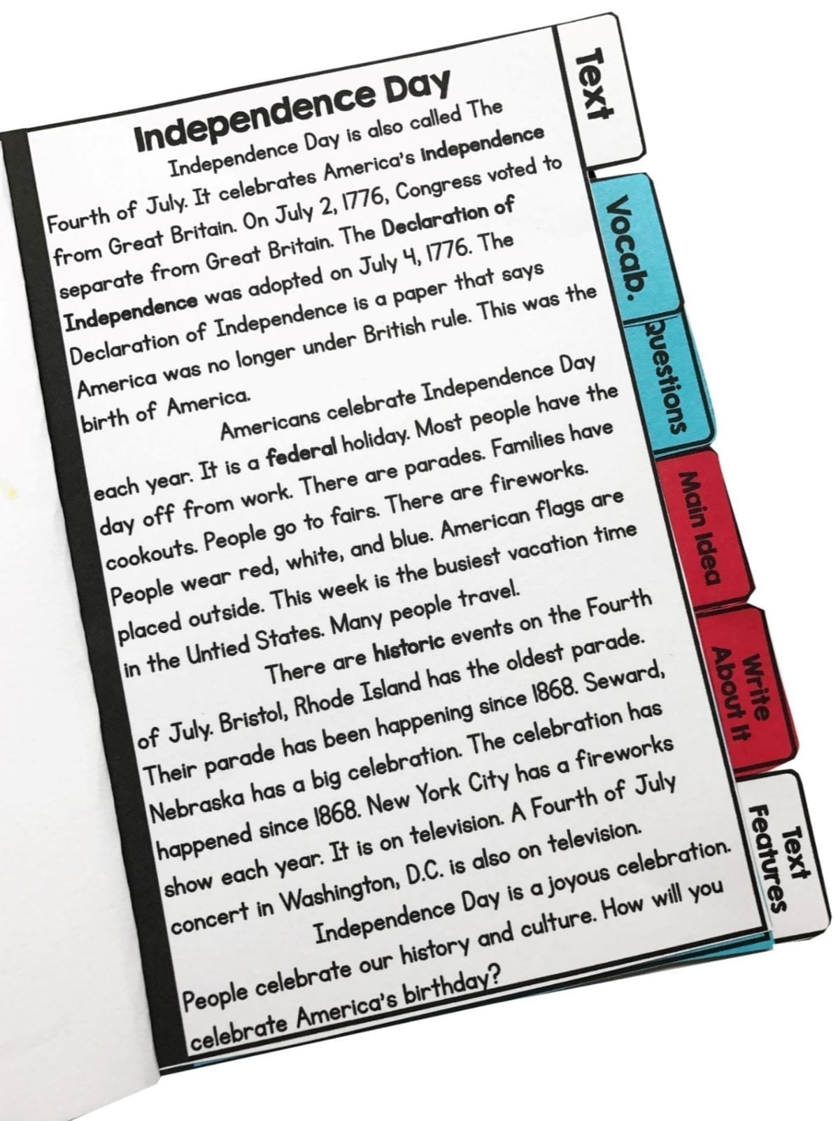 4th Of July Comprehension Flip Book Activities 2nd U0026 3rd Grade
