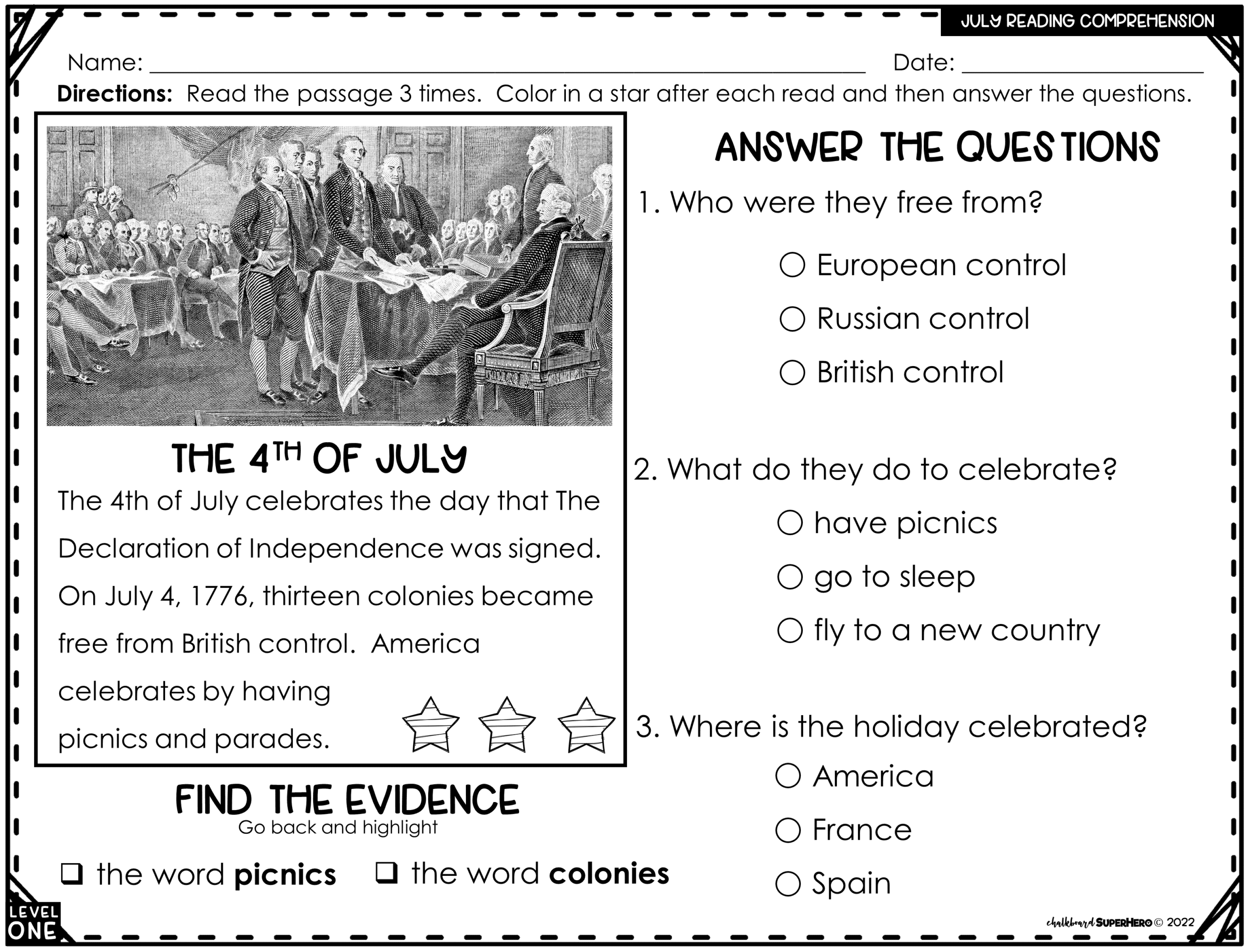 So why not download our 4th of July Reading Comprehension Worksheet today and celebrate the holiday in a fun and educational way? It’s a great way to combine learning and leisure while also honoring the history of our country.