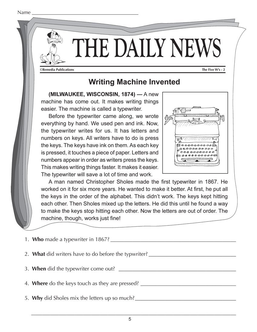 Reading Comprehension Worksheets Five W s Reading Comprehension Worksheets