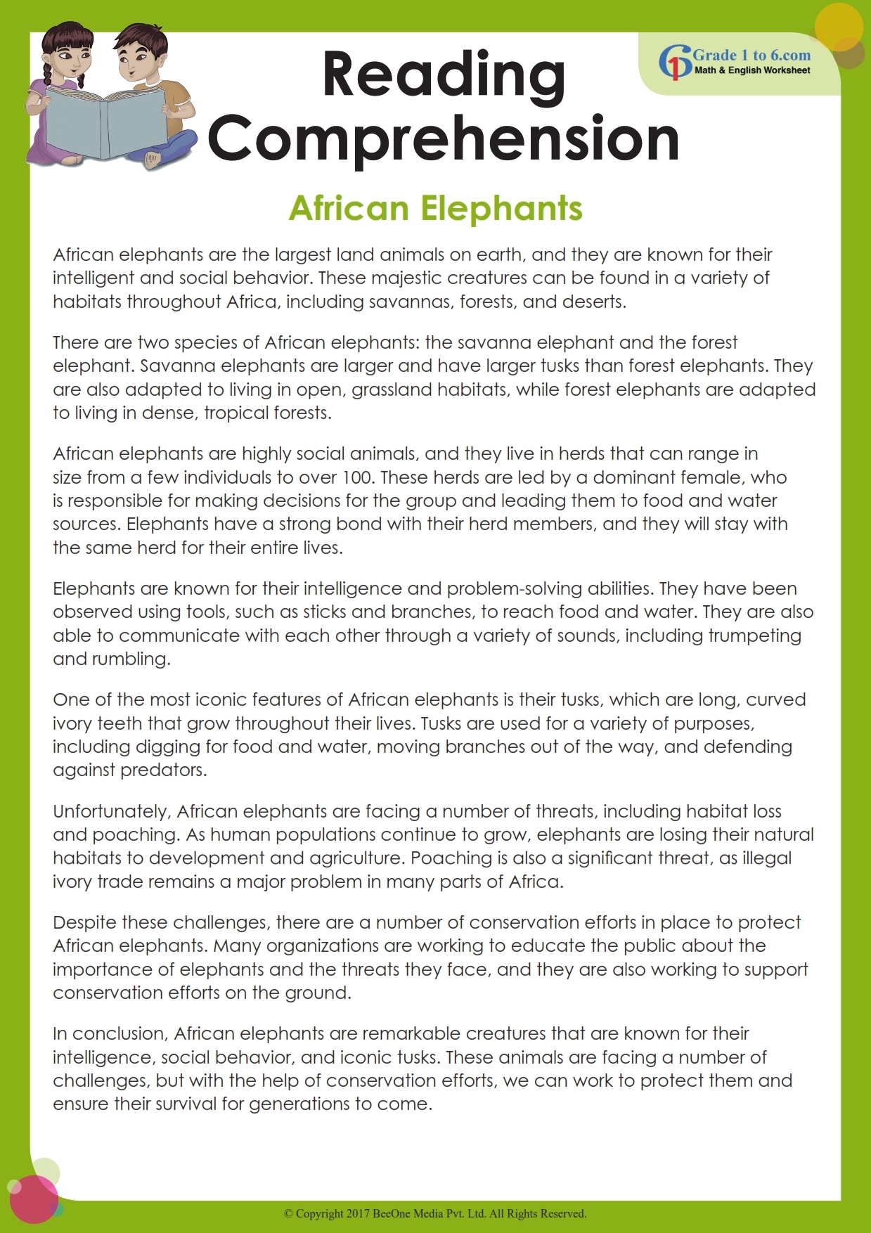6th Grade English Reading Comprehension Worksheets