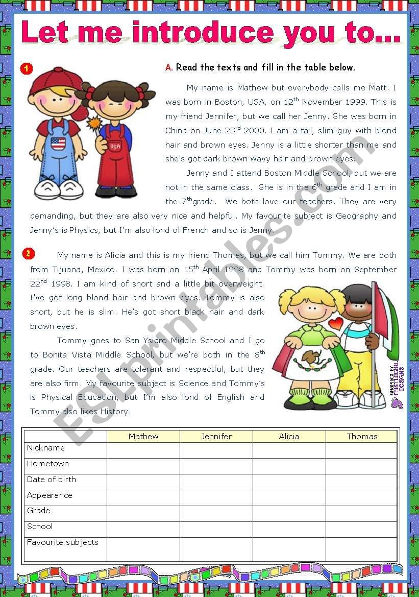 Let Me Introduce You To Reading Comprehension ESL Worksheet By Mena22