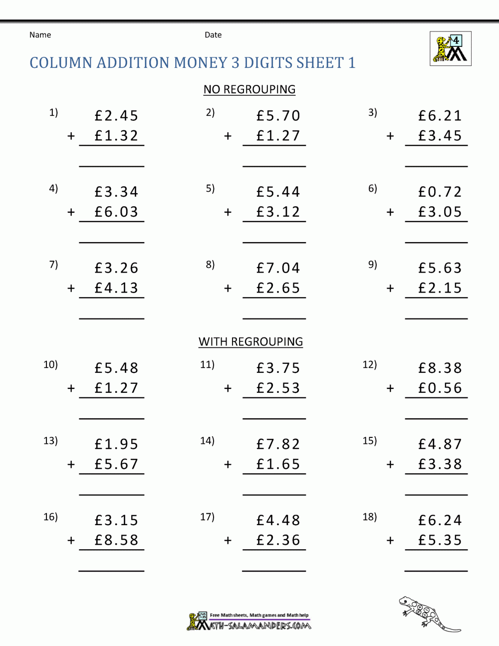 Addition Money Worksheet Free Printables