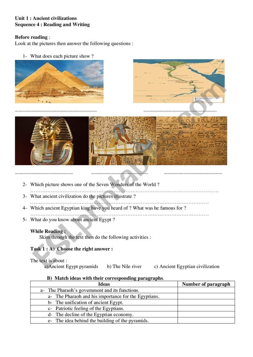 Ancient Civilization ESL Worksheet By Samir2008