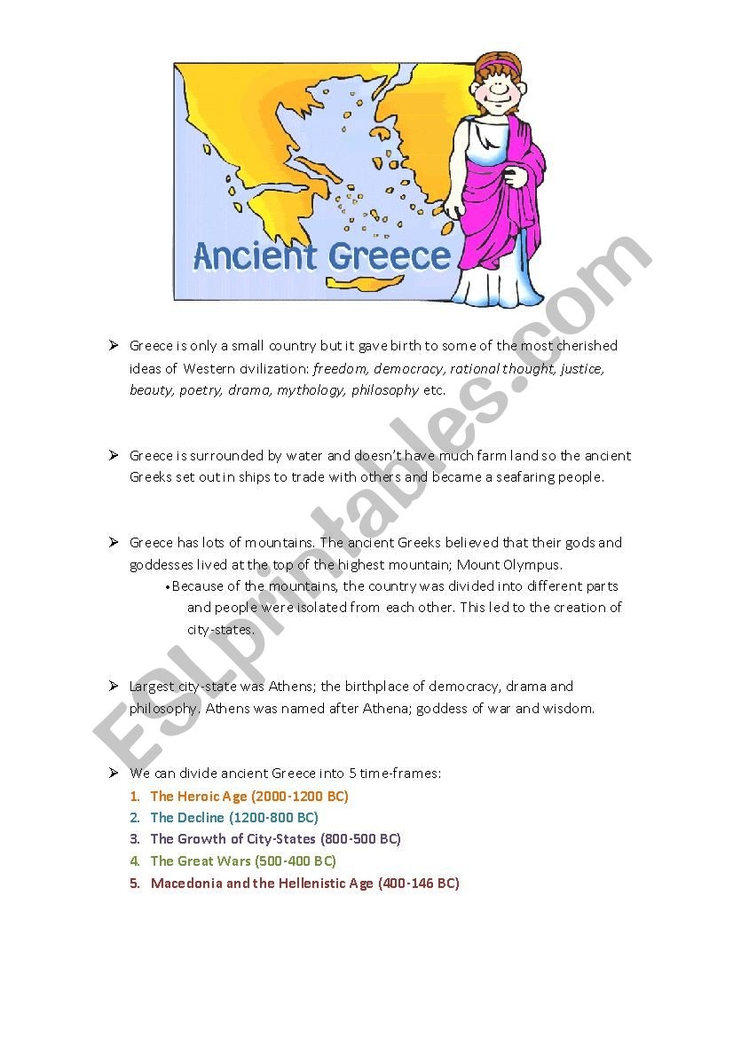 Reading Comprehension Ancient Greek Civilization ESL Worksheet By Kim82
