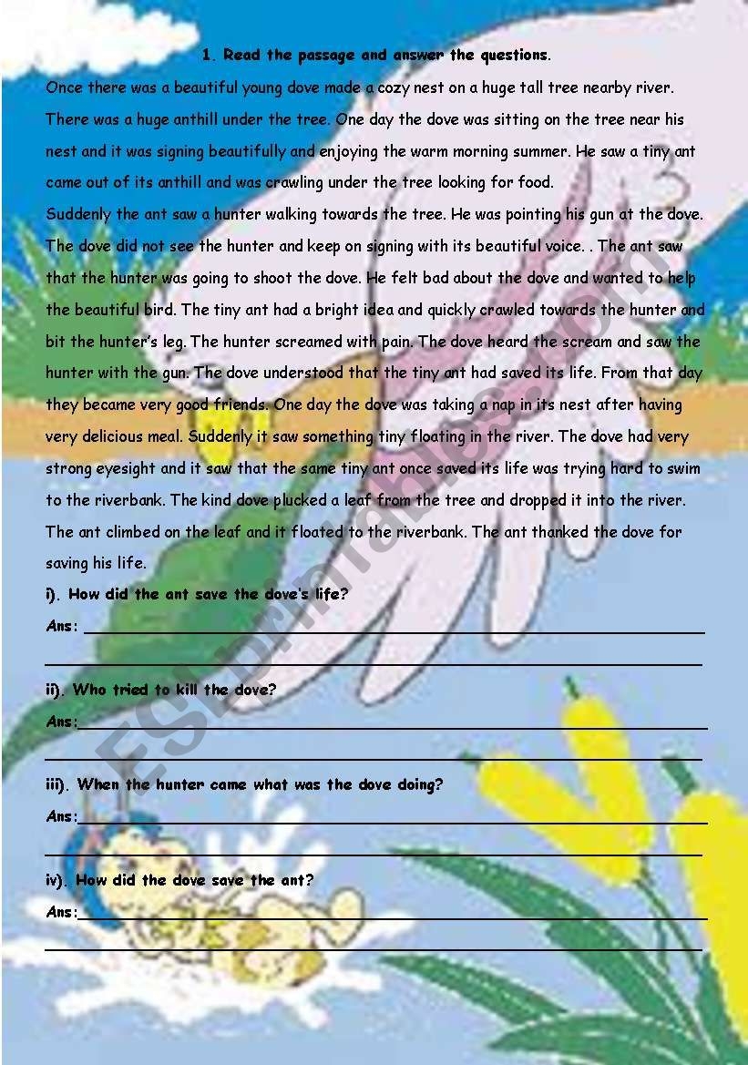 The Ant And The Dove ESL Worksheet By Asmajabbar