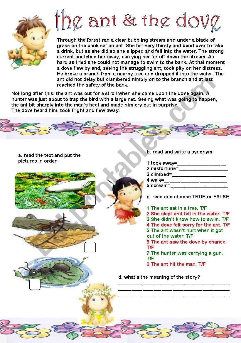 The Ant And The Dove ESL Worksheet By LILIAAMALIA