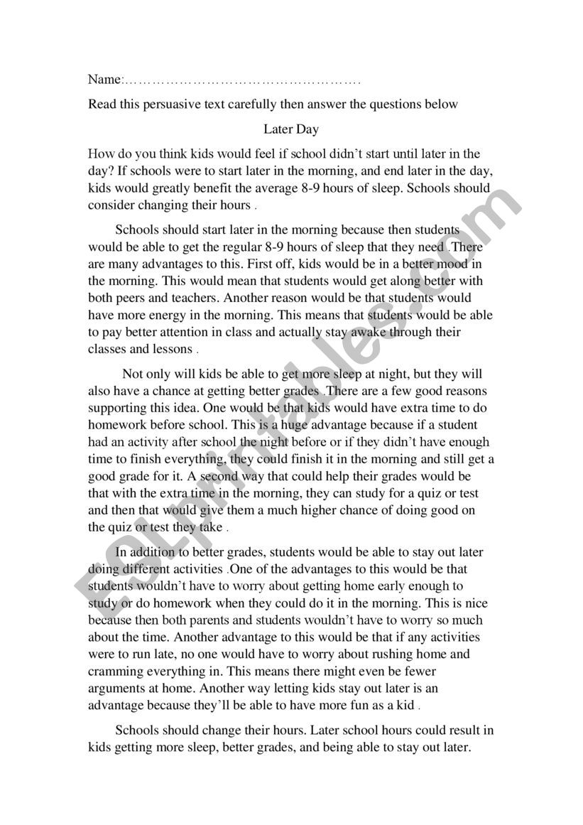 Reading Comprehension Persuasive Passage Year Round School A Better Option ESL Worksheet By Kim82