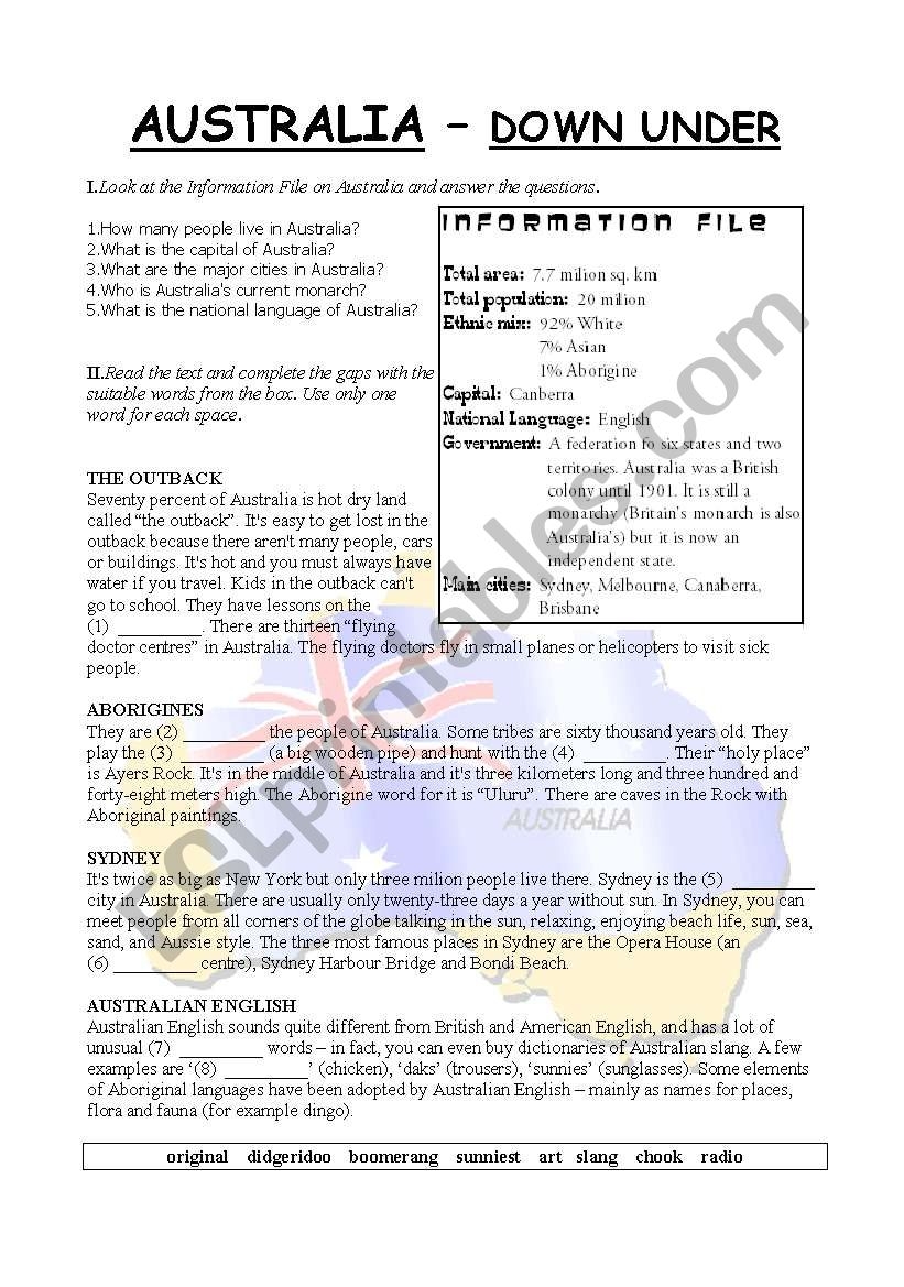 Australia Reading Comprehension ESL Worksheet By Gossipgirl