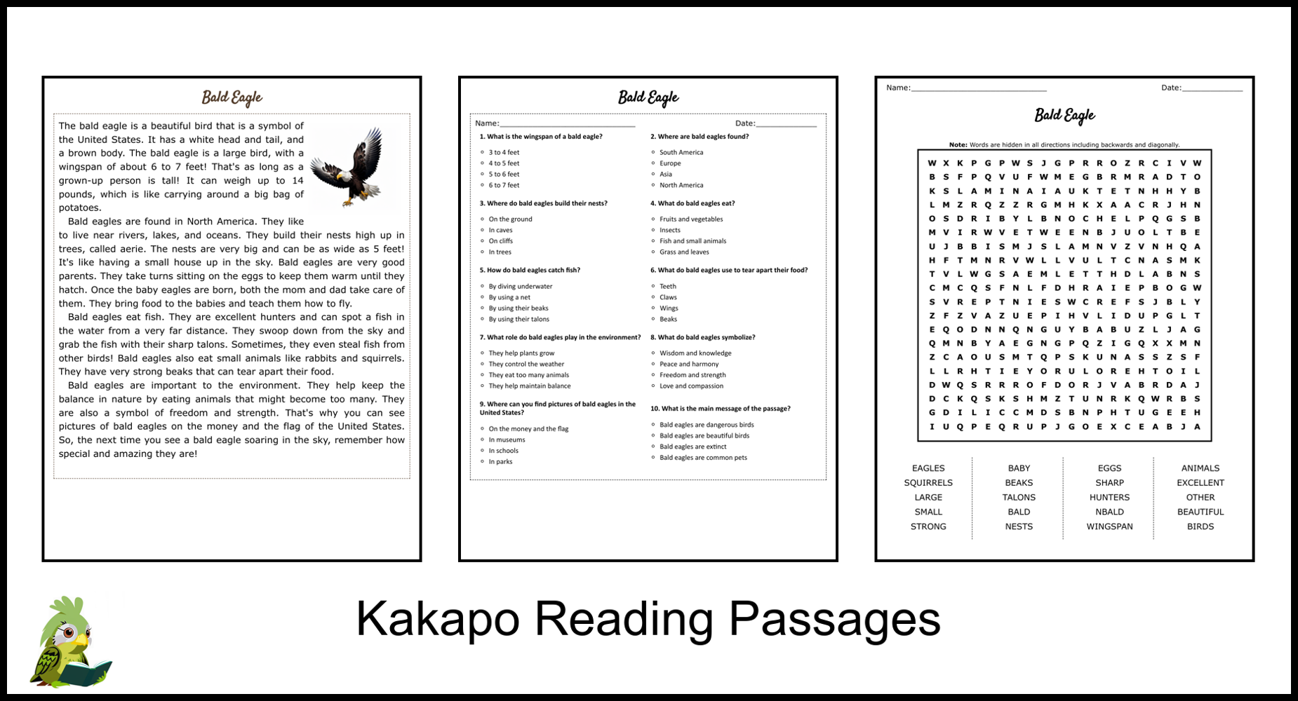 With a variety of worksheets available, students can learn about the habitat, behavior, and importance of Bald Eagles in our ecosystem. These worksheets often include passages to read, followed by questions to test understanding and encourage critical thinking.