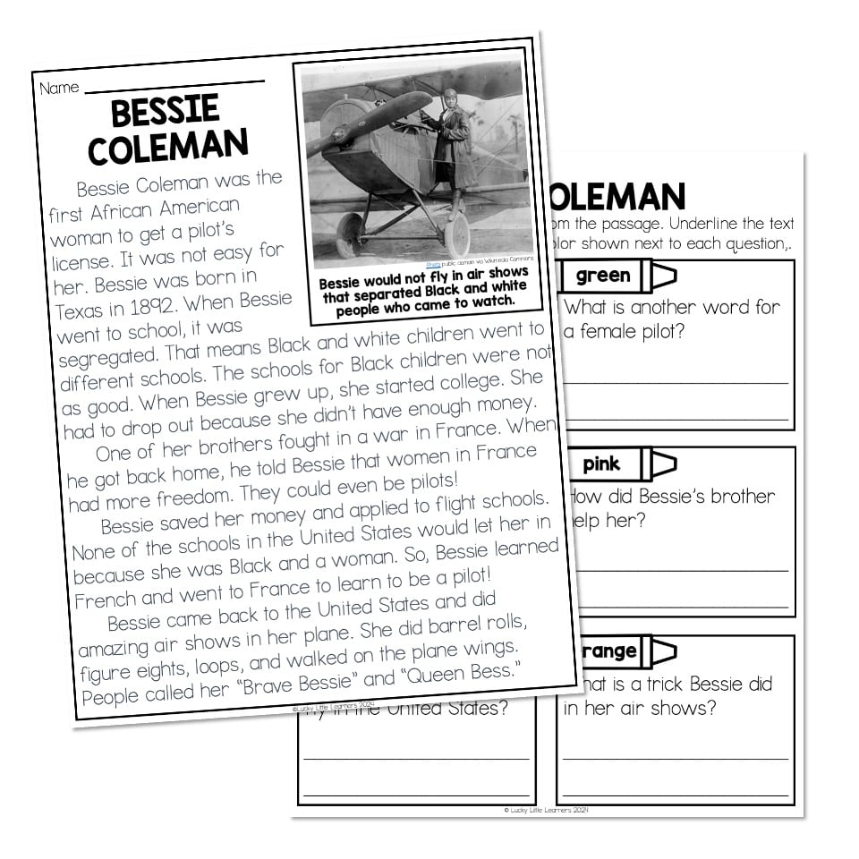 Nonfiction Reading Passage Biography Bessie Coleman Lucky