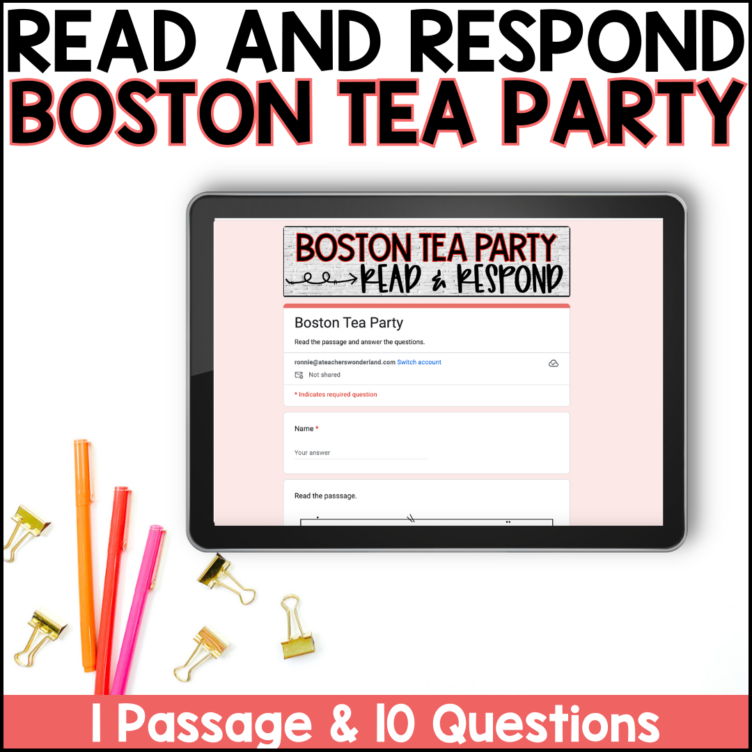 The Boston Tea Party Worksheets And Reading Comprehension Quizzes For Social Studies Instant Download PDF Download US History Etsy