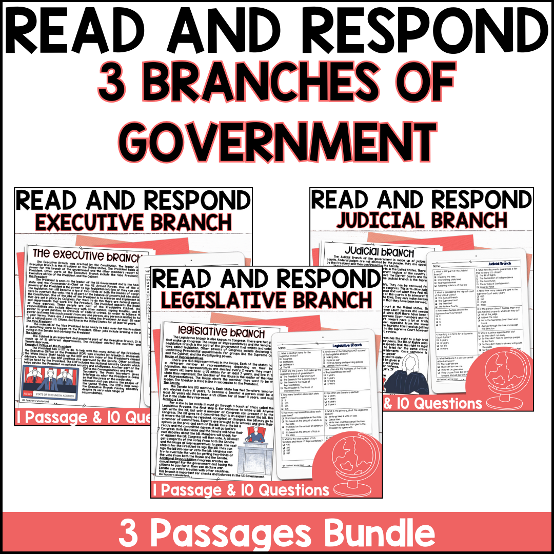 So why wait? Download these branches of government reading comprehension worksheets today and watch as your students’ understanding of our government system grows. With these fun and informative worksheets, learning about the branches of government has never been easier!