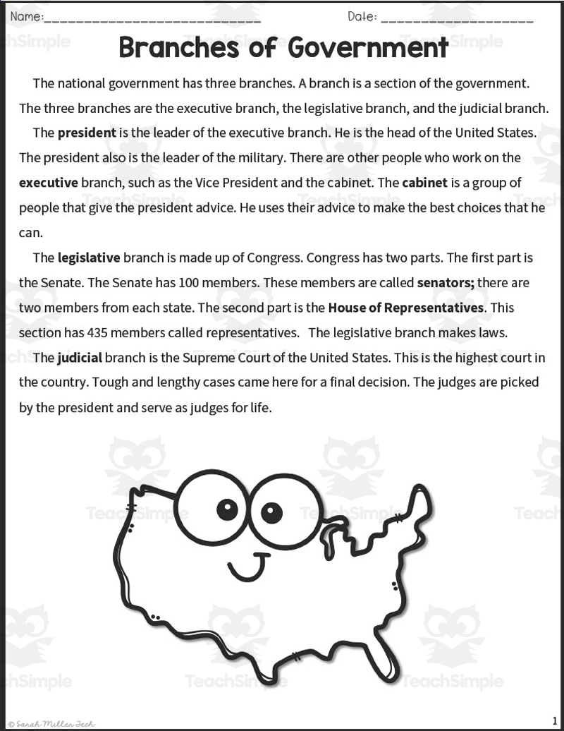 Have you been looking for engaging and educational reading comprehension worksheets on the branches of government? Look no further! These worksheets are a fun and interactive way for students to learn about the executive, legislative, and judicial branches of government.