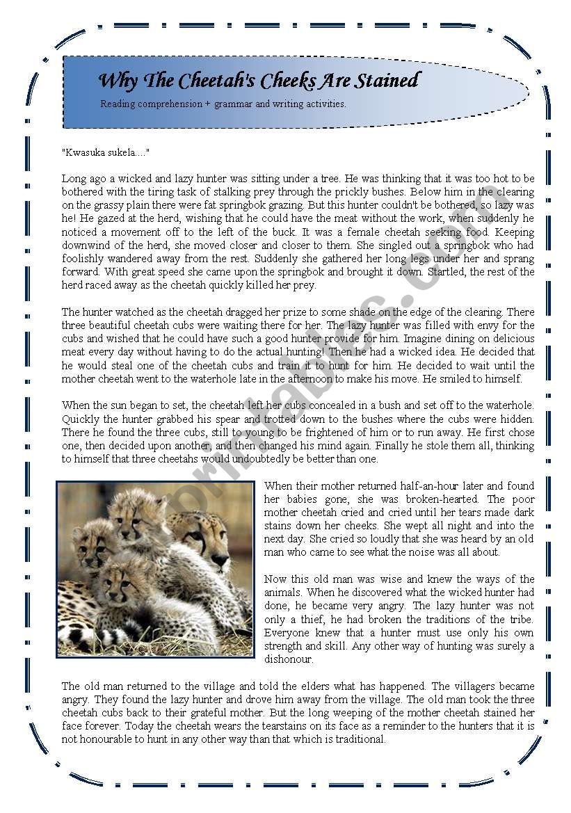 Reading Comprehension Cheetahs ESL Worksheet By Abitano