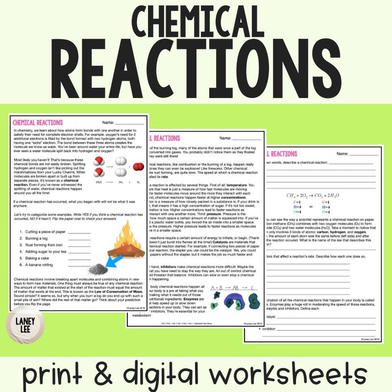 Chemical Reactions Reading Comprehension Worksheets