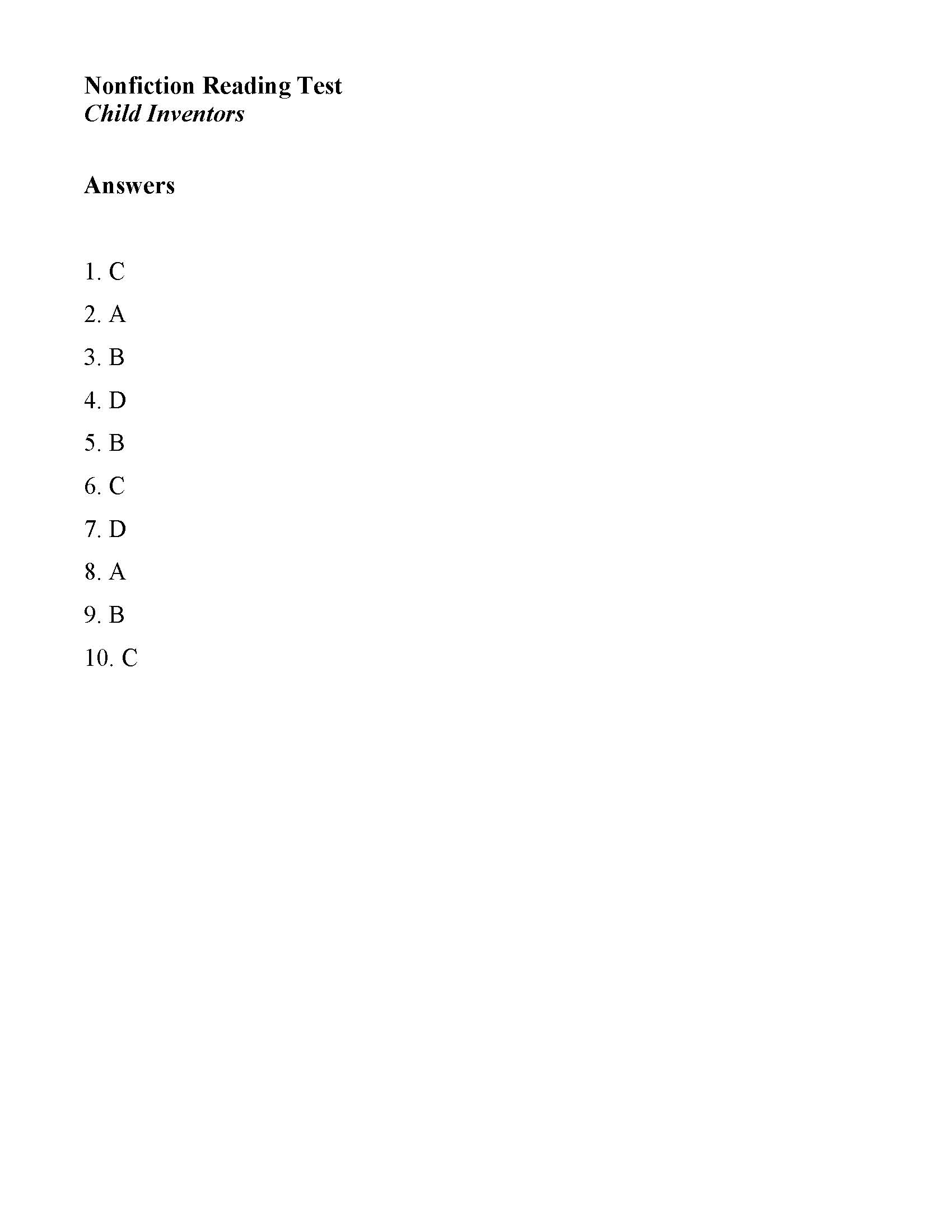Child Inventors Nonfiction Reading Activity