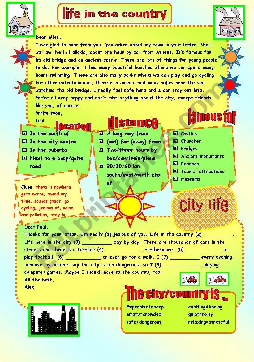 CITY COUNTRY LIFE WRITING SPEAKING ESL Worksheet By Nkappa