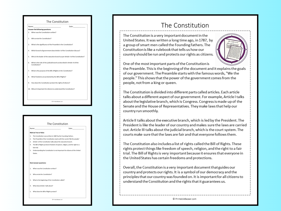 Understanding the constitution is crucial for any student of civics or history. By practicing with worksheets, you can improve your comprehension skills and deepen your knowledge of this important document.