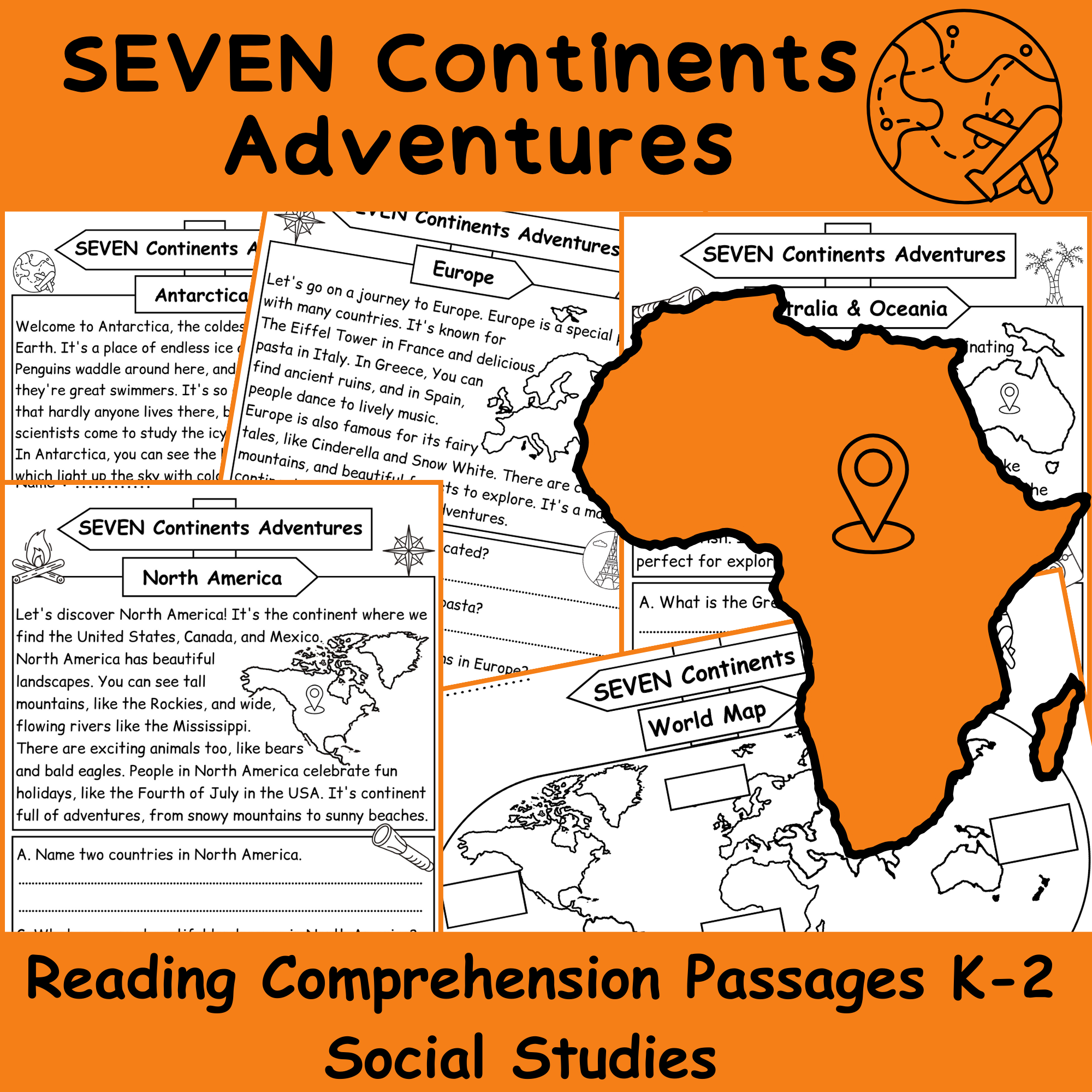 7 Continents Reading Comprehension Passages K 2 Social Studies Made By Teachers