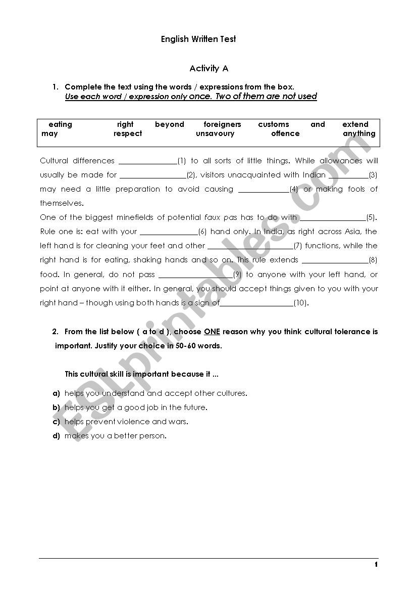 Reading comprehension worksheets can also improve your language skills. By reading and interpreting texts about cultural practices, you can expand your vocabulary and gain a deeper understanding of the language spoken in your new surroundings. This can boost your confidence in communication and help you feel more integrated.
