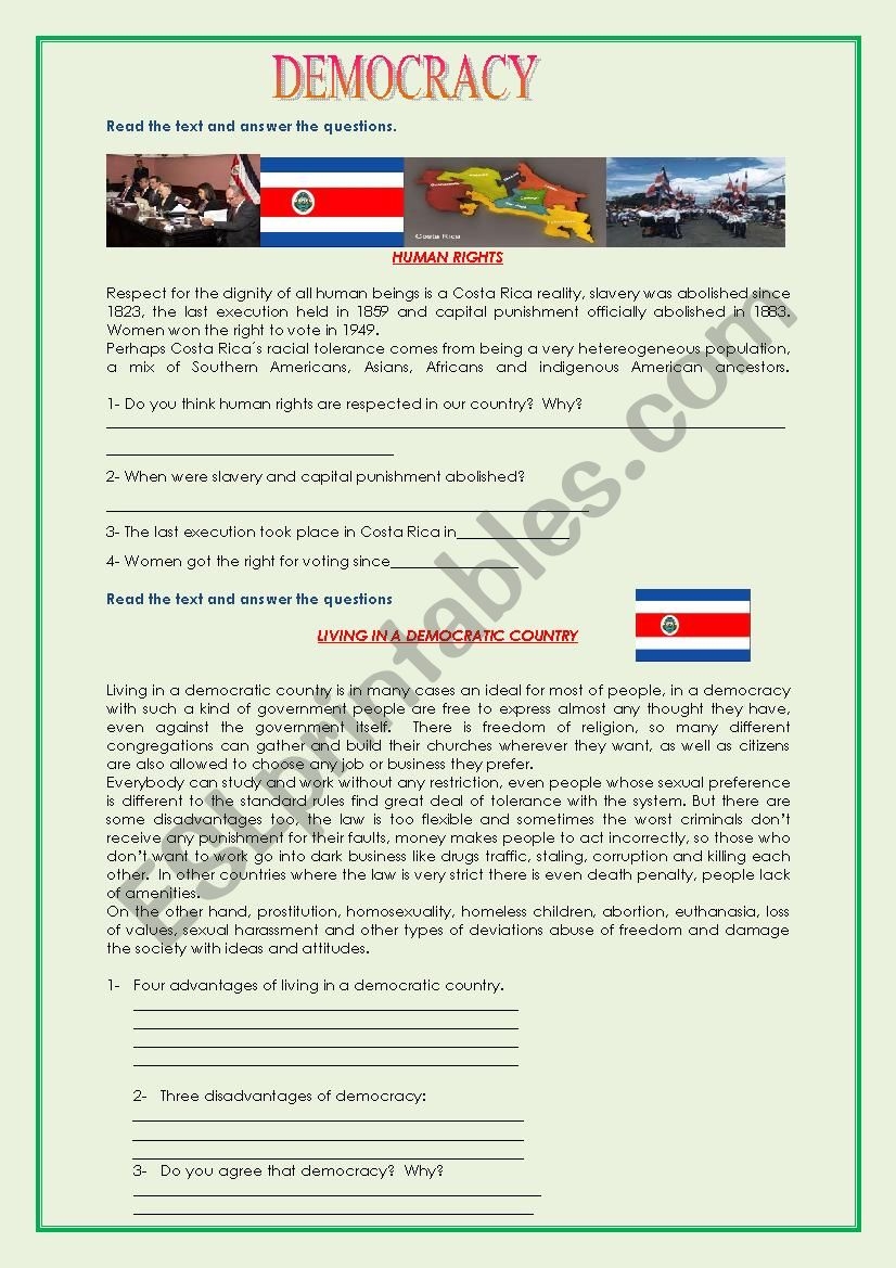 READING COMPREHENSION EXERCISE ABOUT DEMOCRACY ESL Worksheet By Nechi