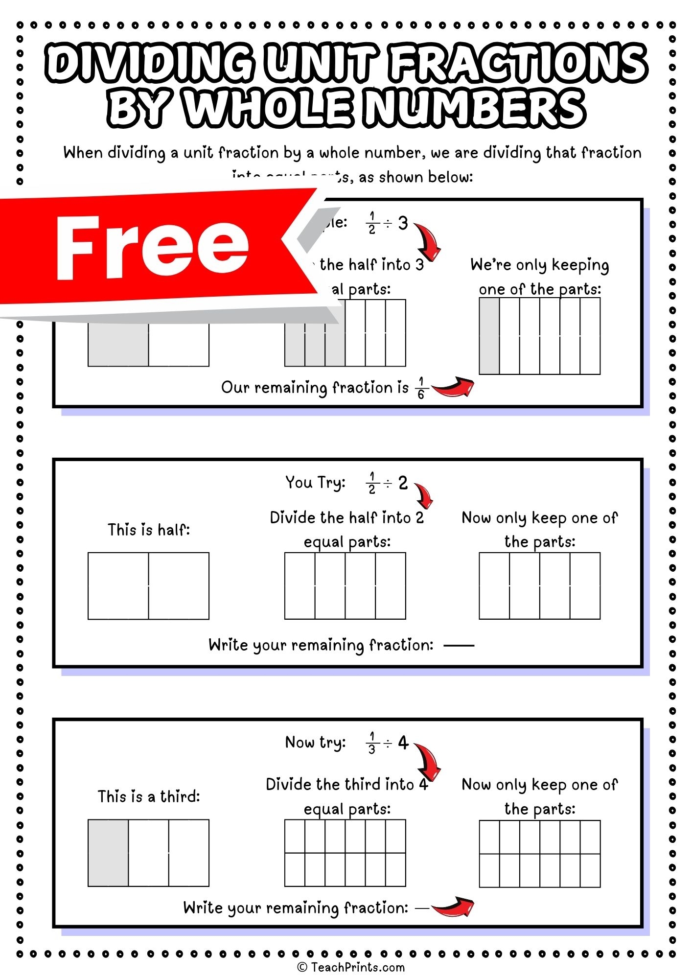 Dividing Unit Fractions By Whole Numbers Worksheets Teach Prints