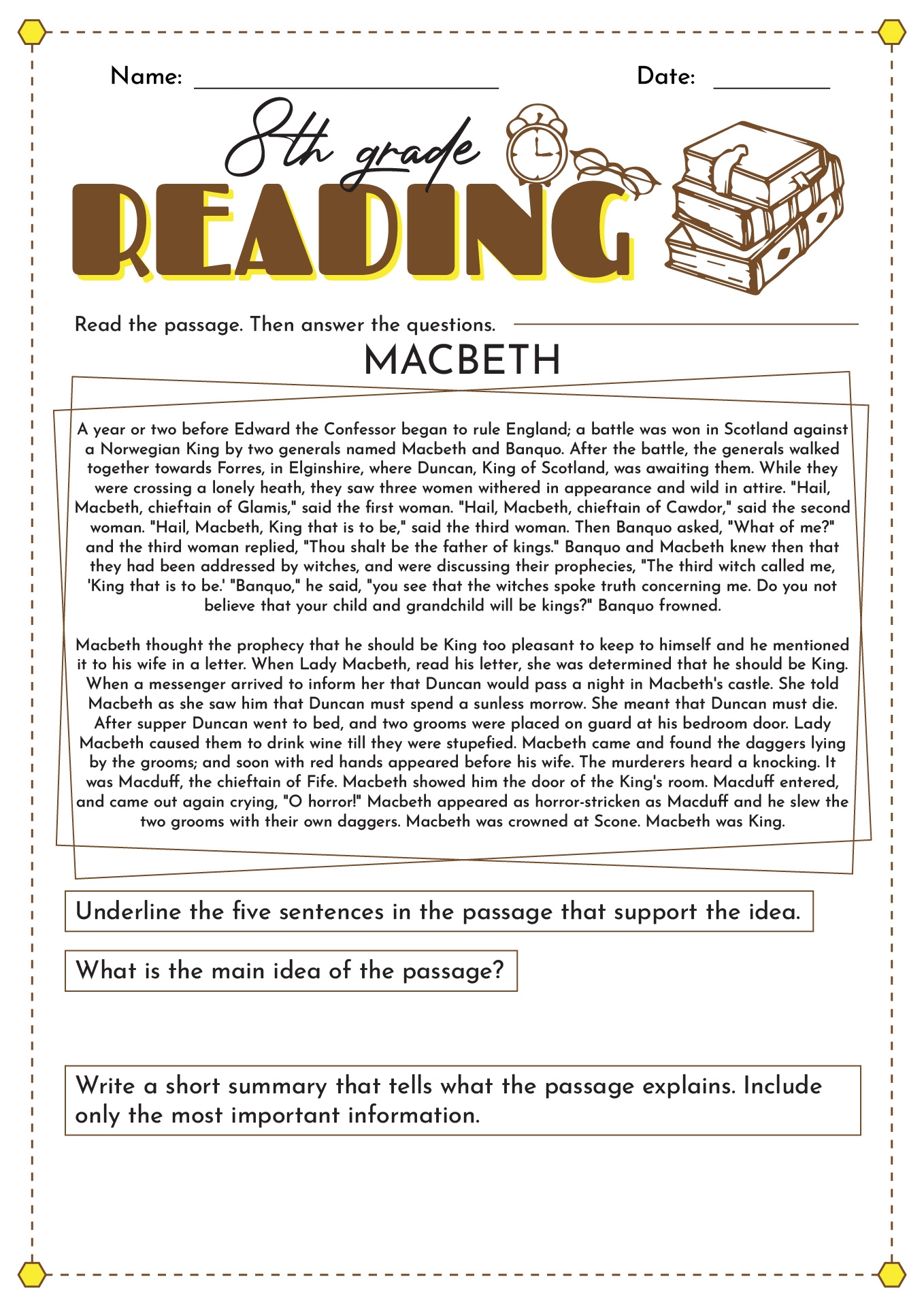 Eighth Grade Reading Comprehension Worksheets