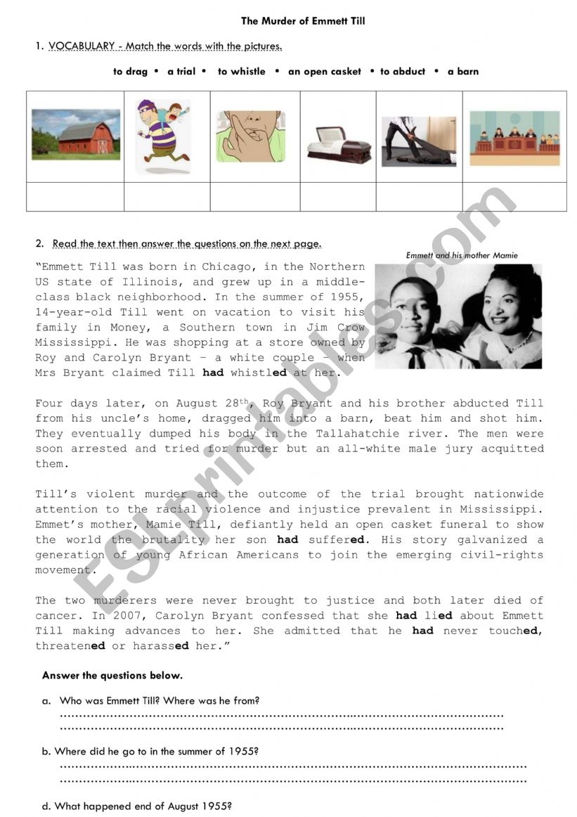 The Death Of Emmett Till ESL Worksheet By Gderivieres