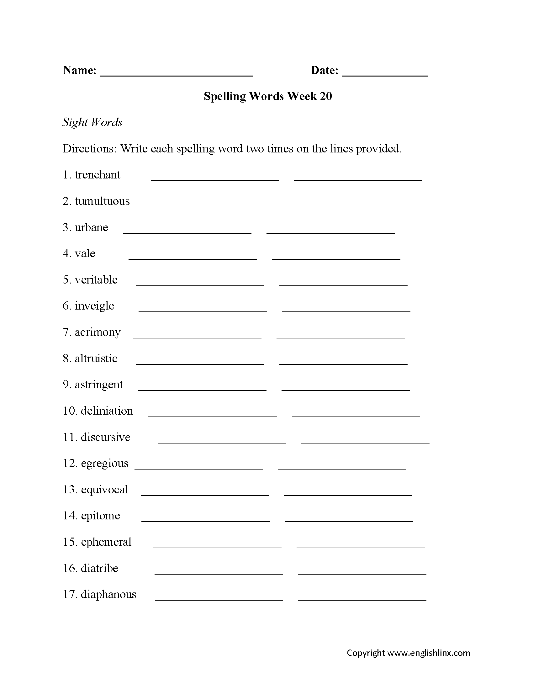 Spelling Worksheets High School Spelling Worksheets