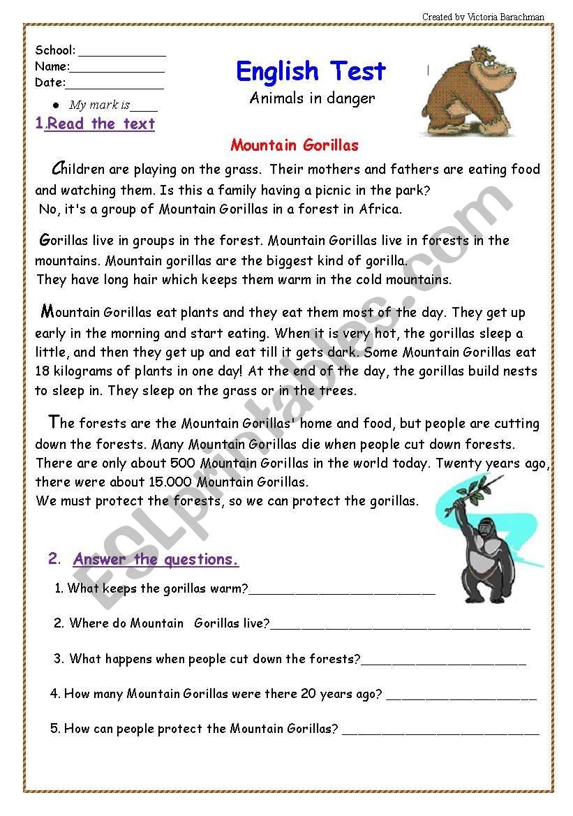 Test Animals In Danger 5 Pages Reading Comprehension And Writing ESL Worksheet By Victoria Ladybug