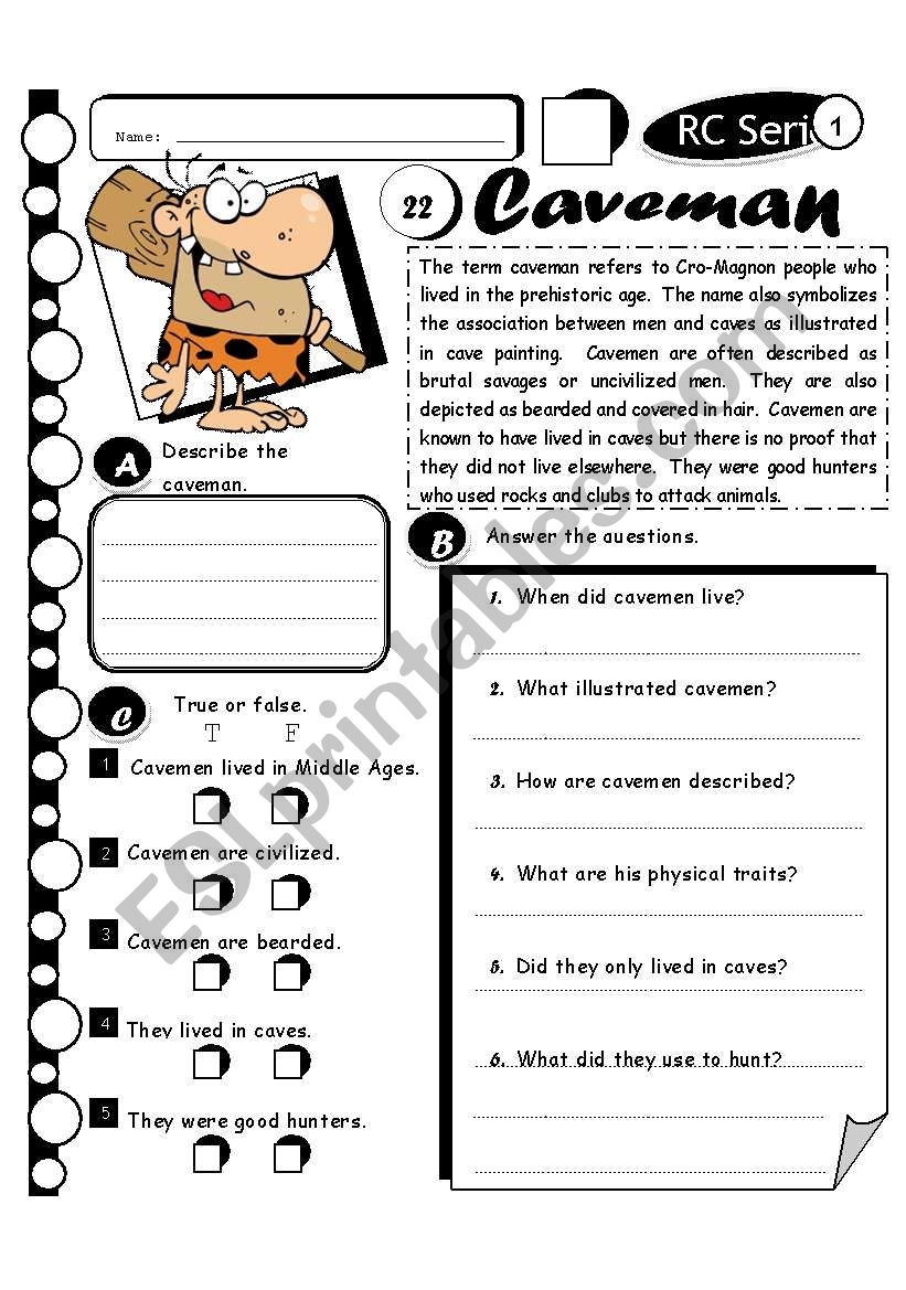 RC Series Level 1 32 Caveman ESL Worksheet By Melahel7