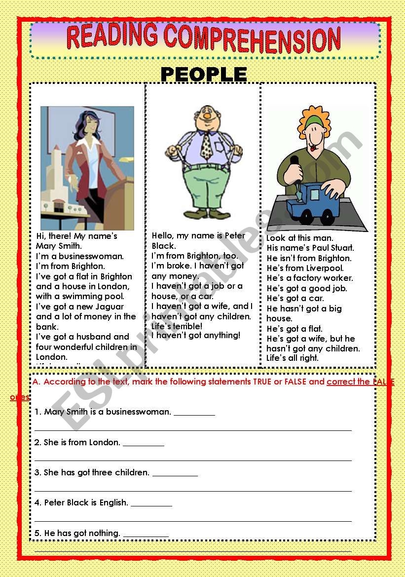 READING COMPREHENSION PEOPLE ESL Worksheet By Macomabi