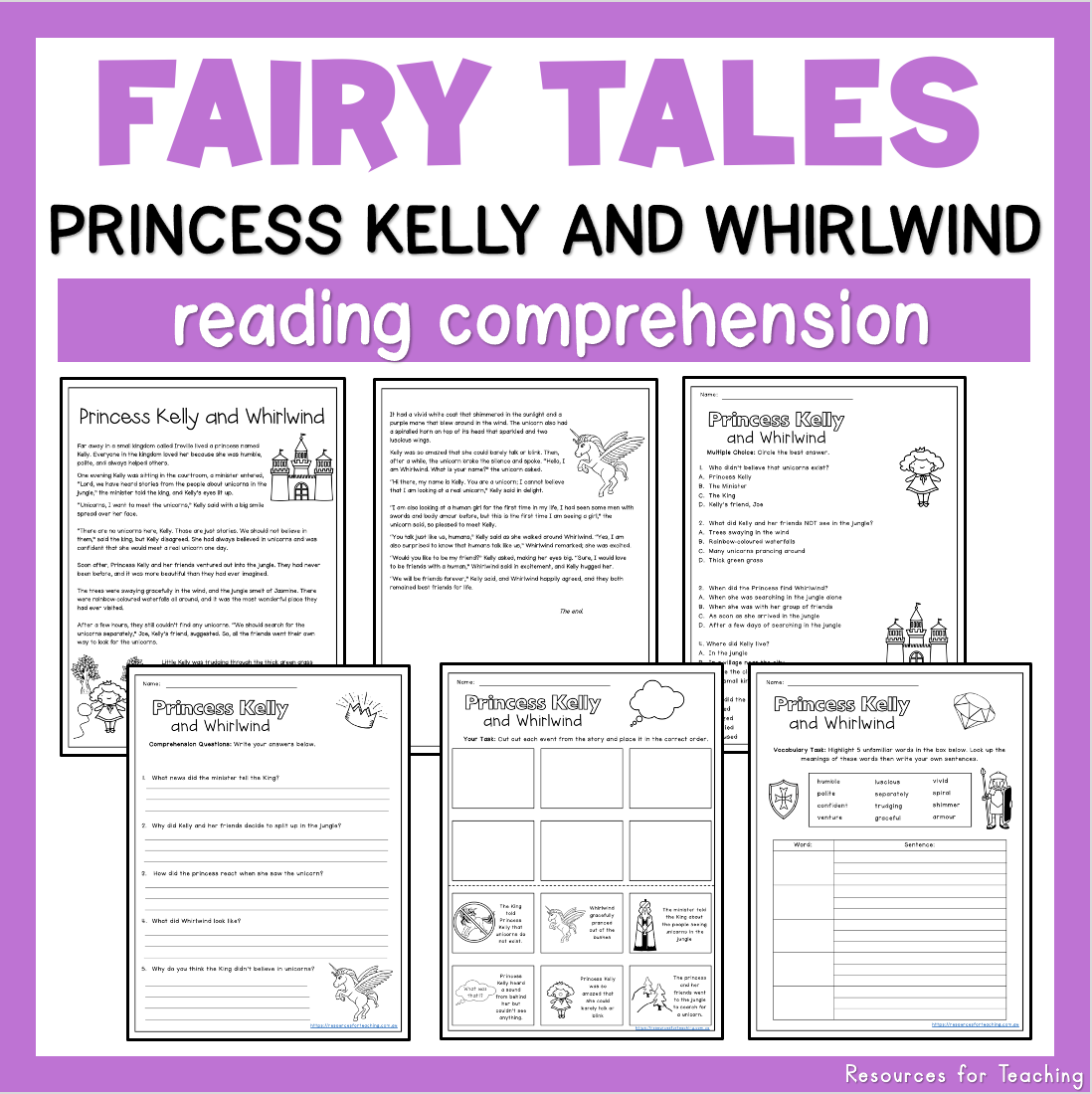 Through these worksheets, students can practice essential skills such as predicting outcomes, identifying main ideas, and making connections between events. They also enhance vocabulary and comprehension skills while immersing students in magical worlds filled with princes, princesses, and talking animals.