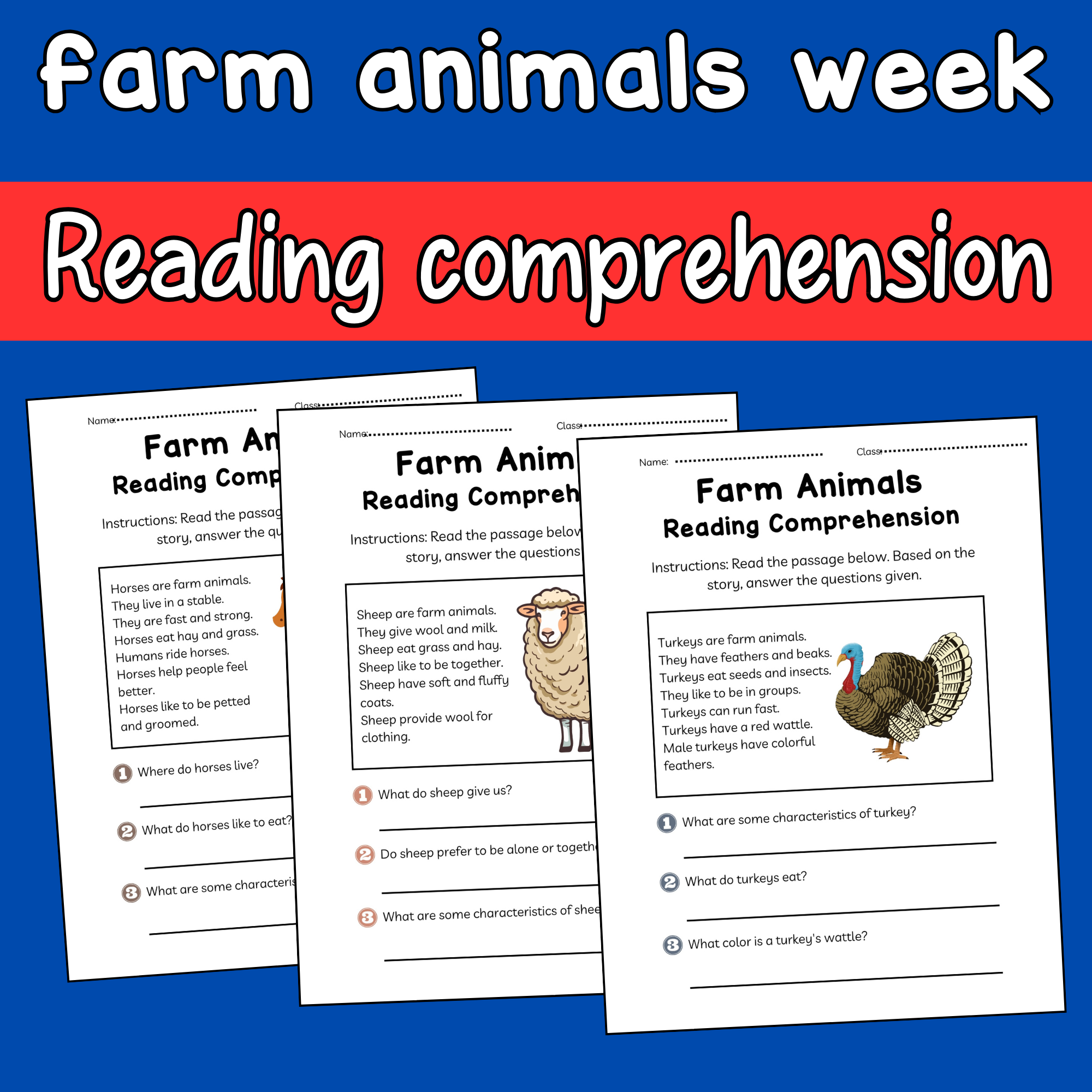 Reading Comprehension Farm Animals