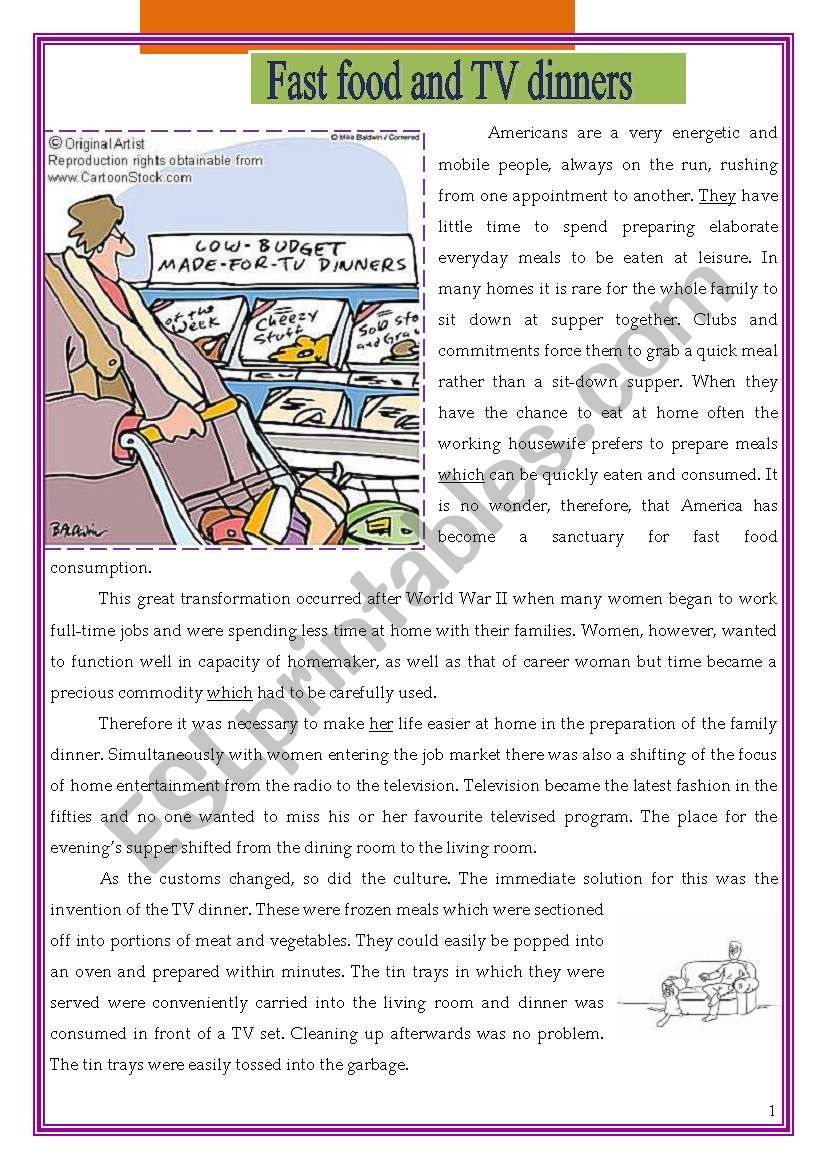Fast Food And TV Dinners ESL Worksheet By Morganalin