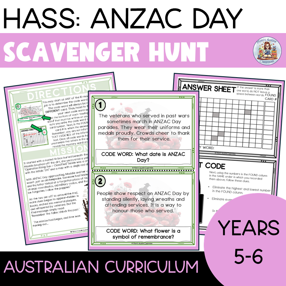 ANZAC Day Scavenger Hunt Task Cards Reading Comprehension Grade 5 U0026 6 Australian Teachers Marketplace
