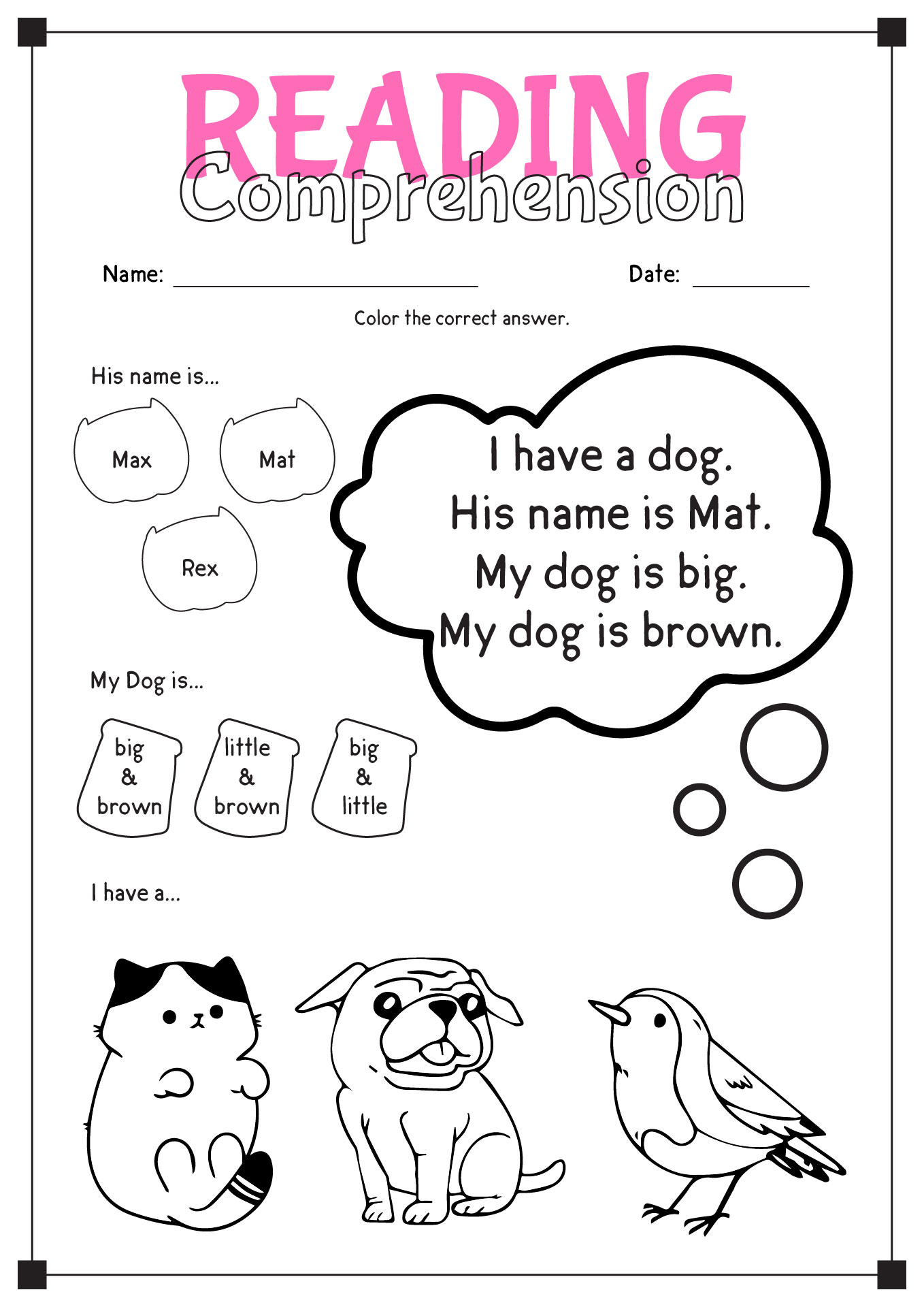 5 Printable Reading Comprehension English Worksheets ages 4 7 KG1 To Grade 2 Etsy Singapore