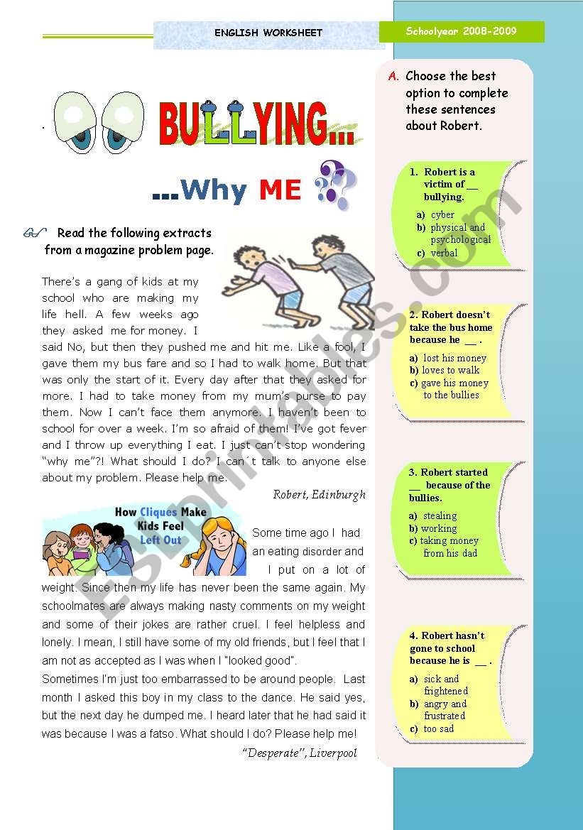 Reading Comprehension Test On Bullying ESL Worksheet By Farah2011