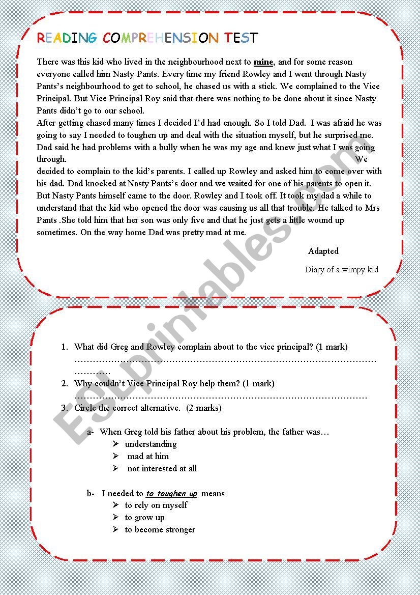 Bullying Reading Comprehension Worksheet Games4esl