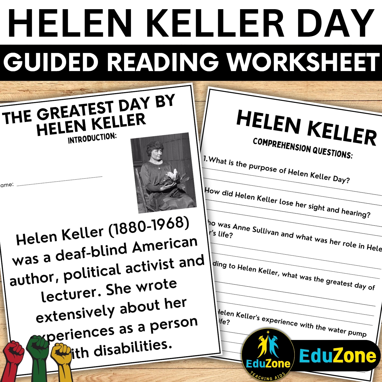 Helen Keller Biography Reading Comprehension Passage Printable Worksheet PDF Teaching Resources