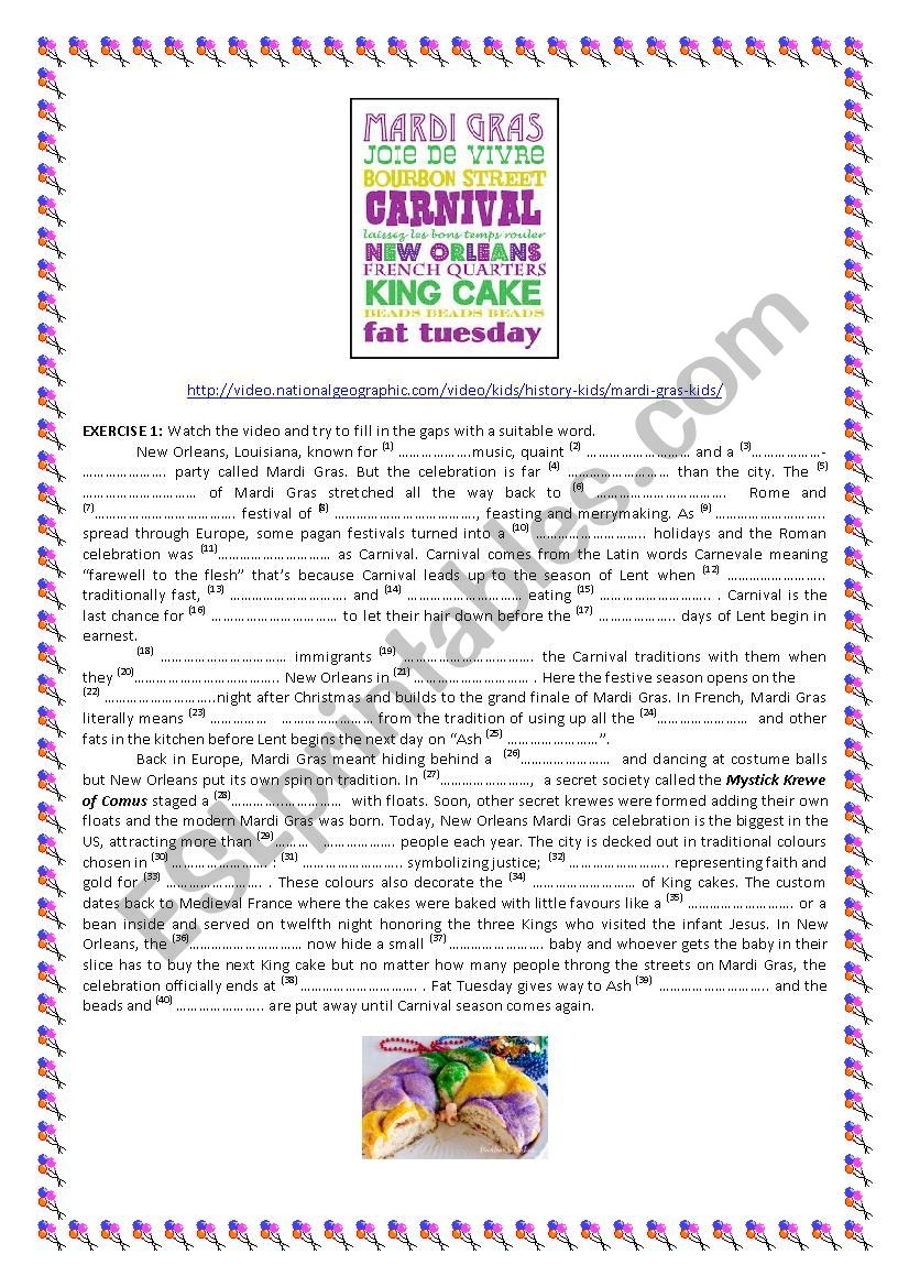 HISTORY OF MARDI GRAS ESL Worksheet By Picheleira