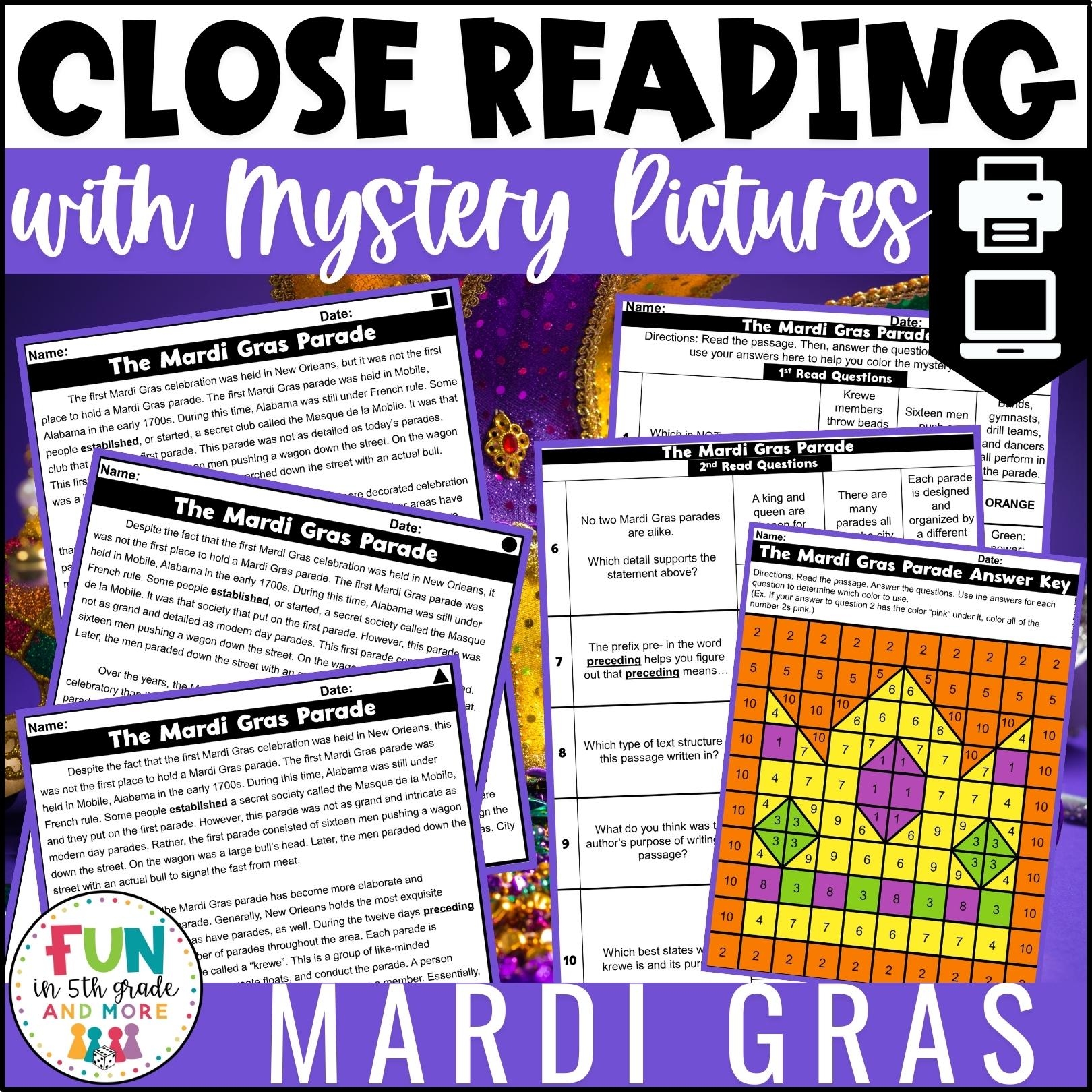 Mardi Gras Reading Comprehension Passages With Mystery Picture Activity Fun In 5th Grade U0026 MORE
