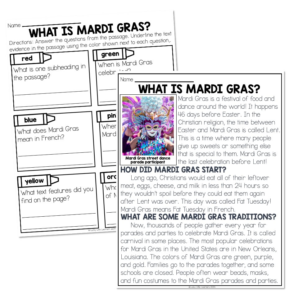Don’t miss out on this opportunity to celebrate Mardi Gras in a meaningful and educational way. Download our free reading comprehension worksheets today and get ready to have a blast learning all about this festive holiday!