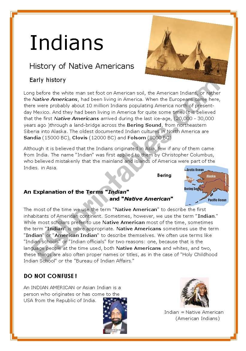 Indians 1 5 History Of Native Americans The Look 3 Pages ESL Worksheet By Bare
