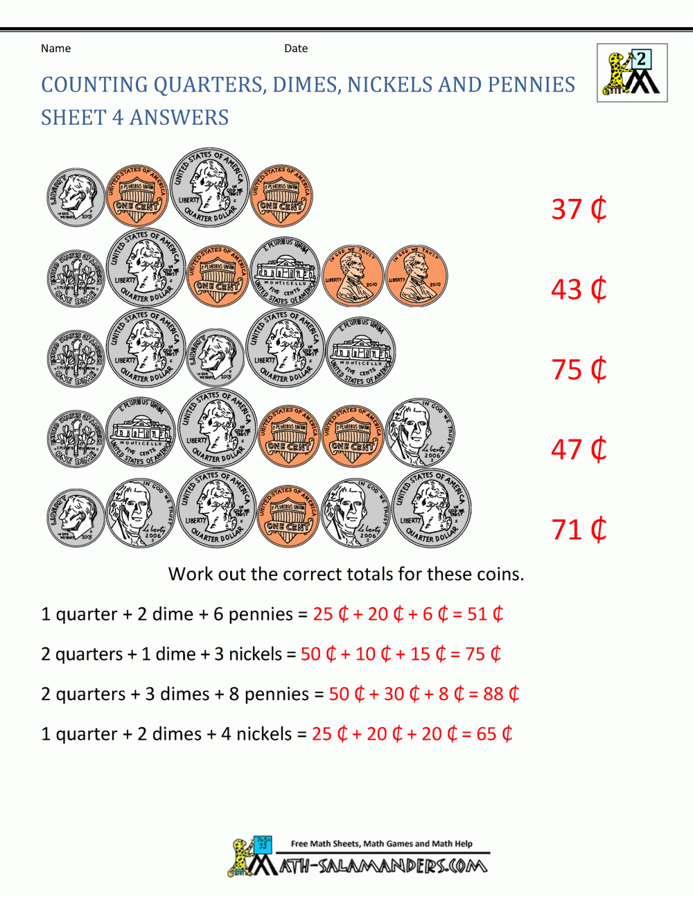 2nd Grade Money Worksheets Up To 2