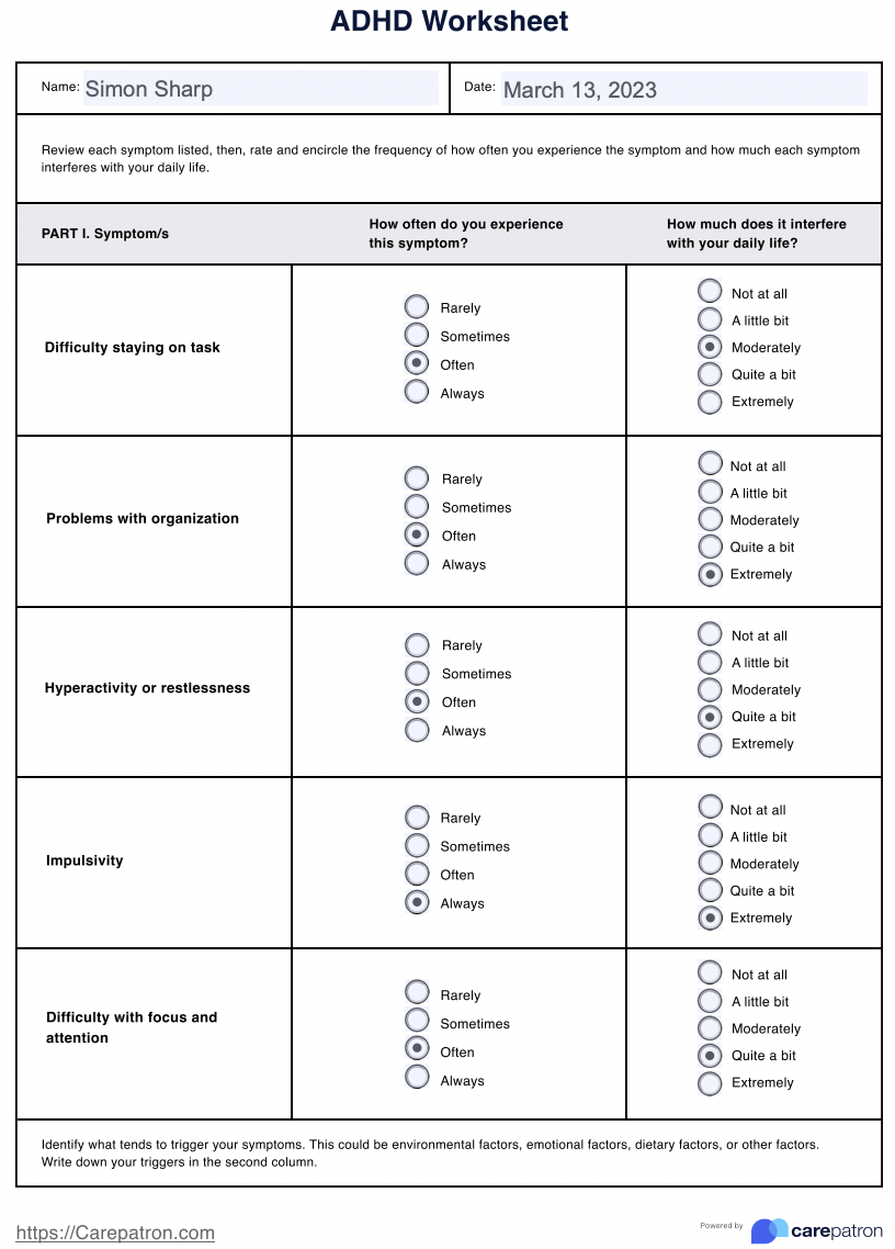 Free Printable ADHD Worksheets For Adults