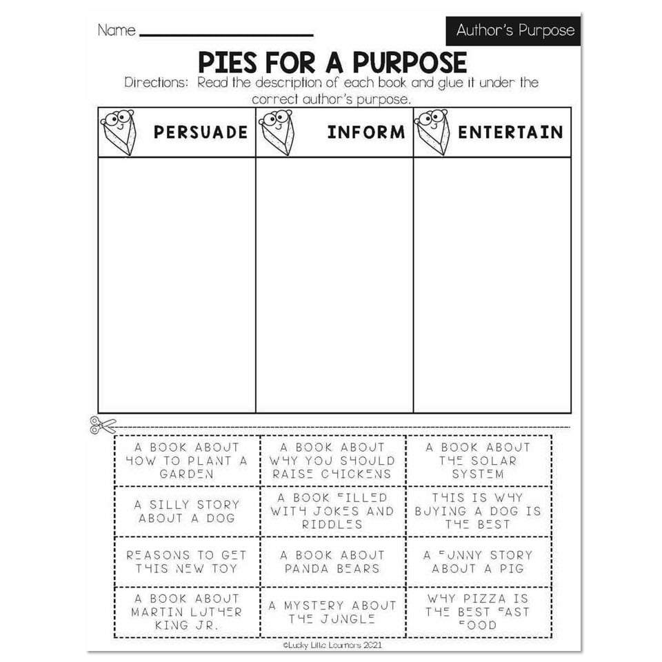 Free Printable Author s Purpose Worksheet Bundle 3 Activities