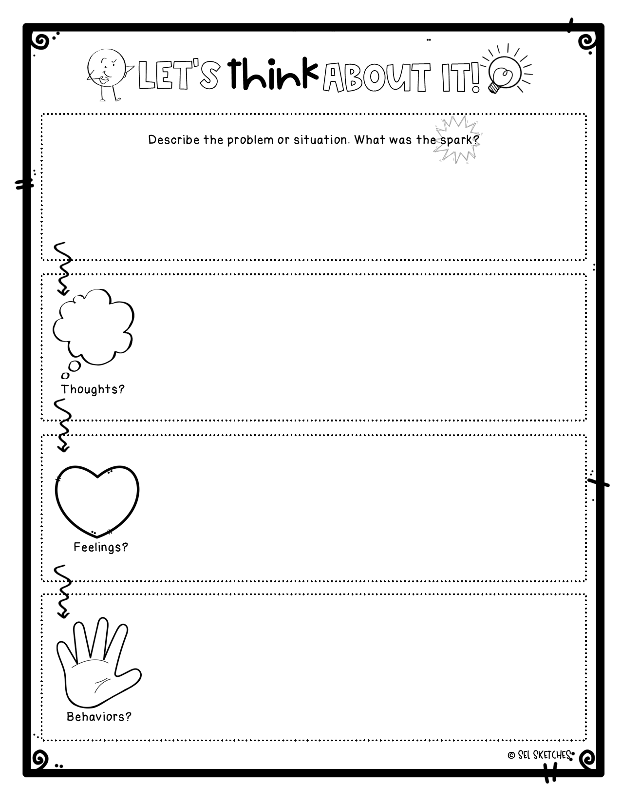 Free CBT Worksheet Explore Feelings Thoughts And Actions WholeHearted School Counseling